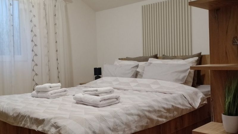 Apartman DVE LIPE je smešten u šarmantnoj i mirnoj ulici na prelepom Paliću, nudeći svojim gostima oazu mira i privatnosti. Ovaj raskošni smeštaj od 68m2 pruža sve što vam je potrebno za udoban i nezaboravan boravak. U spavaćoj sobi ćete pronaći udoban bračni krevet sa mekanom posteljinom, prostrani garderober za odlaganje vaših stvari i pametni televizor za opuštajuće večeri. Druga soba je opremljena sa tri udobna zasebna ležaja, savršena za decu ili prijatelje. Tu je i garderober, radio aparat i nekoliko društvenih igara kako biste se zabavili tokom svog boravka. U prostranom dnevnom boravku ćete pronaći udobnu ugaonu garnituru koja se može pretvoriti u bračni ležaj za dodatni smeštaj. Tu je i televizor sa 150 kanala za vaše uživanje, kao i X-box 360 za igrače. Kuhinja je moderno opremljena i otvorenog tipa, sa sve potrebnim uređajima i priborom, zajedno sa prostranim stolom za ručavanje, gde ćete moći da uživate u obrocima sa svojim voljenima. Za porodice koje putuju sa malom decom, tu je besplatan dečiji krevetac kako bi se vaša beba osećala sigurno i udobno. U svim prostorijama je dostupno podno grejanje, inverter klima, Wi-Fi i telefon kako biste se osećali kao kod kuće. Kupatilo je moderno uređeno i opremljeno tuš kabinom, fenom za kosu, papučama i svežim peškirima za vašu udobnost i higijenu. Pred apartmanom se nalazi besplatan parking kako biste imali lakoću i sigurnost prilikom dolaska i odlaska. Tokom letnjeg perioda, gosti mogu koristiti besplatne bicikle za izlete i pedaline za vožnju po jezeru, pružajući vam priliku da istražite lepote Palića na zabavan način. Apartman DVE LIPE je luksuzni smeštaj sa tri zvezdice, smešten na adresi Panonska 17, na samom Paliću. Za sve dodatne informacije i rezervacije, slobodno nas kontaktirajte na telefon Srđana, 0643442626. Očekujemo vas sa otvorenim rukama i spremni smo da vaš boravak kod nas učinimo nezaboravnim.