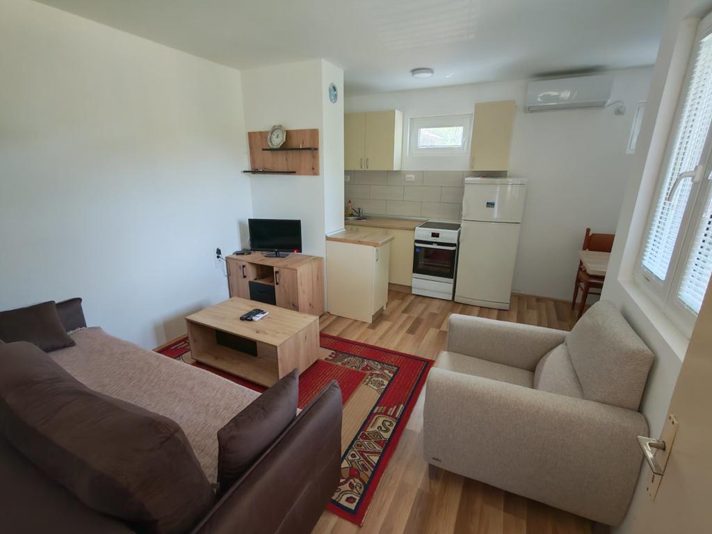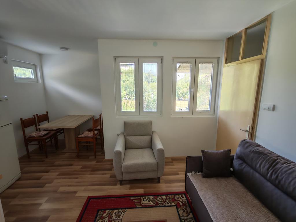 Kuća za izdavanje se sastoji od dnevne sobe sa trpezarijom, kuhinjom sa pratećim elementima i trosedom na razvlačenje. Spavaća soba ima francuski ležaj, krevet samac i krevetac za decu. Kuća ima kupatilo,terasu sa prelepim pogledom, i dvorište. Od dodatnih sadržaja kuća ima kablovsku televiziju i klima uredjaj.