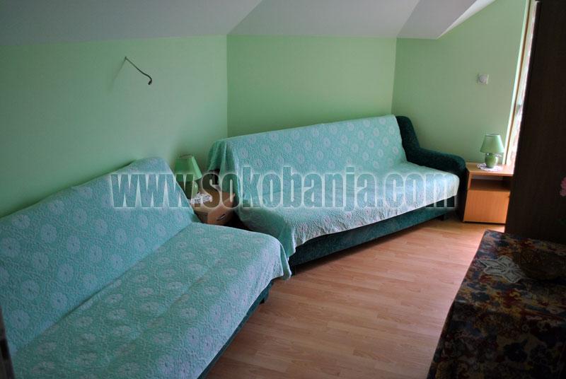 Soba 6 IVA Smederevac nalazi se na I spratu porodične kuće i pogodna je za boravak četvoročlane porodice, deli kupatilo sa još jednom sobom. Poseduje terasu.