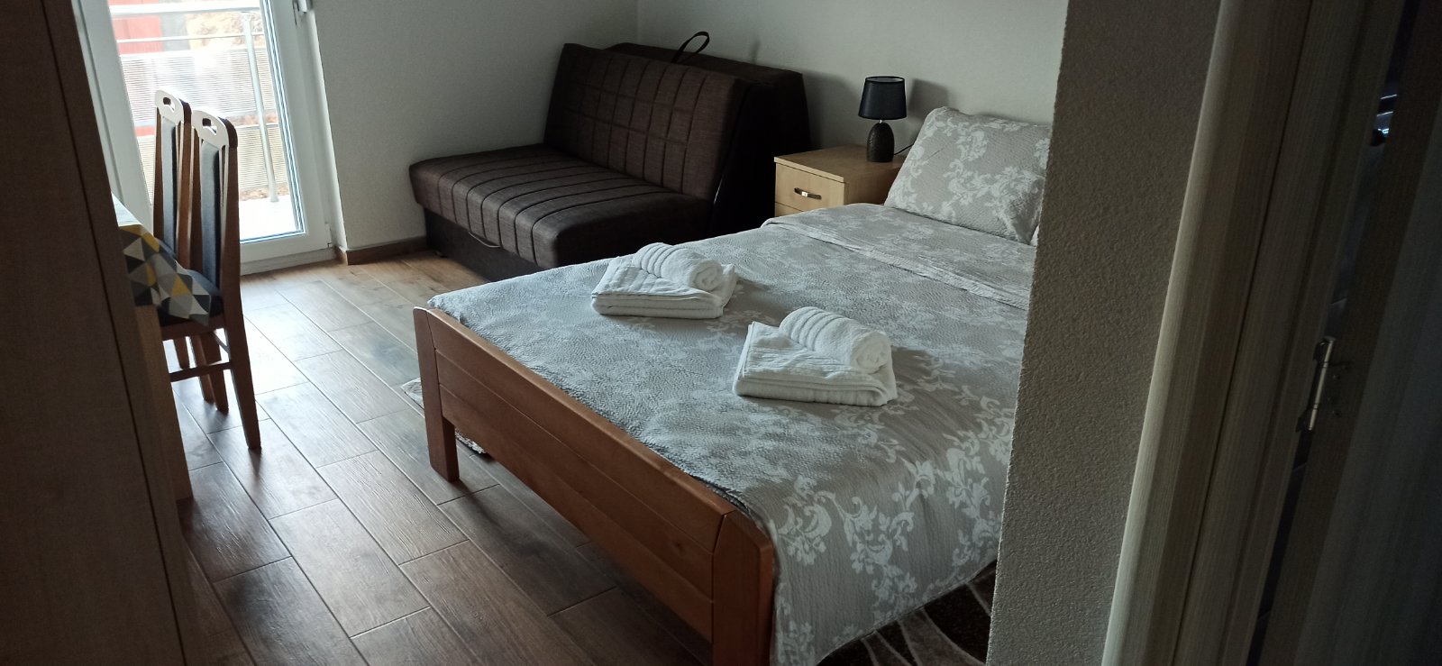 Kuhinja: Kuhinjski pribor, Čaše i tanjiri, Frižider • Kupatilo: Peškiri, Fen za kosu, Tuš kabina • Spavaća soba: Posteljina, Garderobni orman, Ravan TV, Internet • Pogledi: Pogled na grad, Pogled na planinu, Pogled na ulicu • Ostalo: Terasa, Klima uredjaj, pet friendly, parking