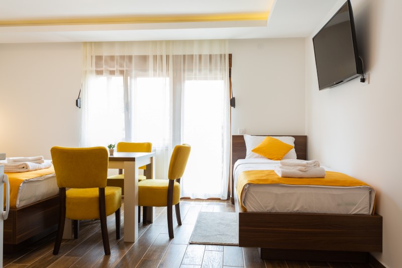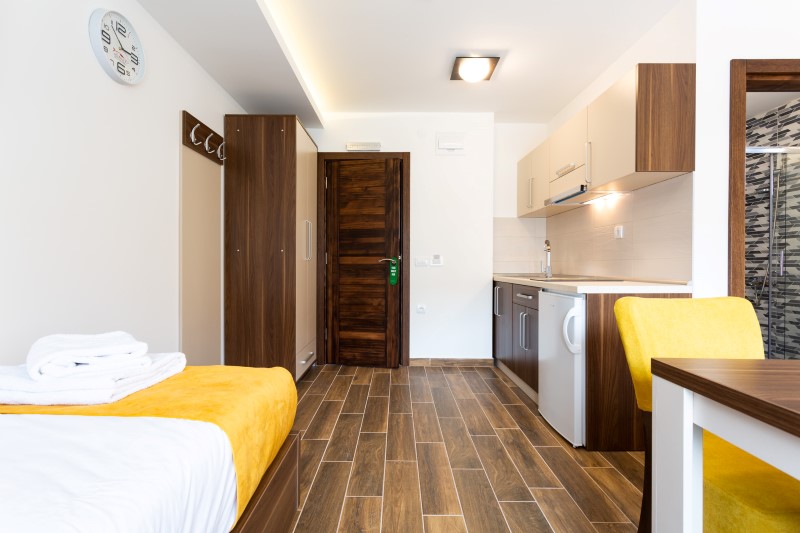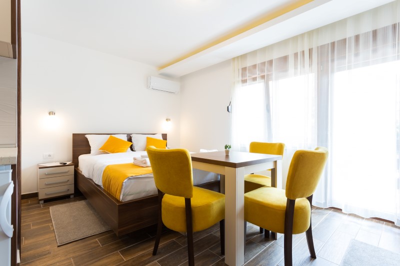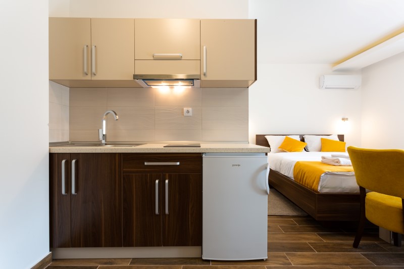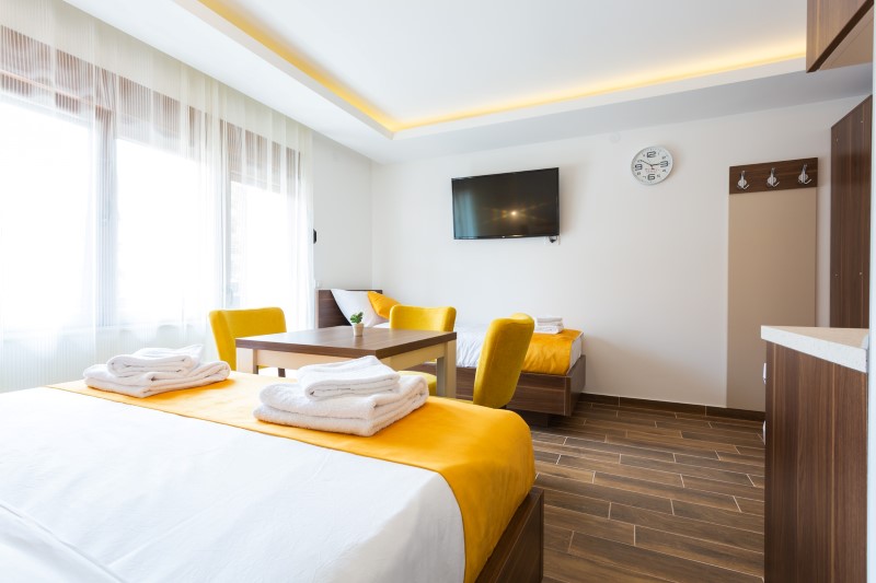 francuski ležaj, sinlg ležaj, bežični internet, LCD TV, kompletno opremljena kuhinja, klima uređaj, fen u kupatilu, dušeci visoke udobnosti memory intelligent, sigurnosni sef za Vaše znamenitosti, podno grejanje za hladne dane