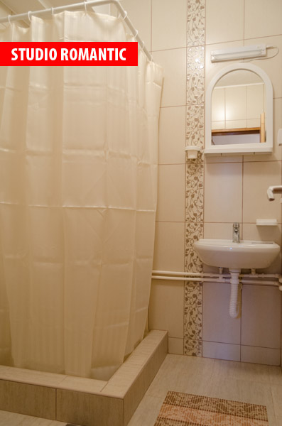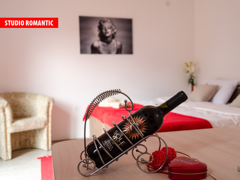 Studio Romantic, ukupne povšine 22m2 sa jednom spavaćom sobom/dnevnim boravkom,kuhinjom, prostranim kupatilom sa tušem i francuskom terasom.